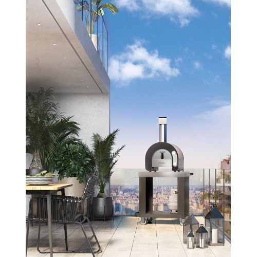 Menší všestranný stůl primárně vyvinutý pro osazení pece na pizzu Fontana Forni Maestro 40, Maestro 60 a Piero. Venkovní multifunkční varné centrum pro přípravu pizzy a dalších pokrmů s komfortní pracovní deskou, úložným prostorem. Stůl rovněž skvěle poslouží k servírovaní. Madlo usnadní manipulaci se stolem a zároveň poslouží k zavěšení utěrek nebo ručníků.