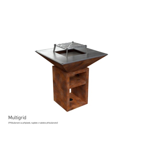 Gril Vulcanus Pro910 má patentovaný design s tělem z patinující oceli COR-TEN. Vydrží jakékoliv venkovní podmínky a jeho topeniště je pro větší komfort při grilování vyložené akumulační vložkou. Přípravu jídla vám tak usnadní lepší cirkulace horkého vzduchu, tepelná stabilita a snížená spotřeba dřeva.