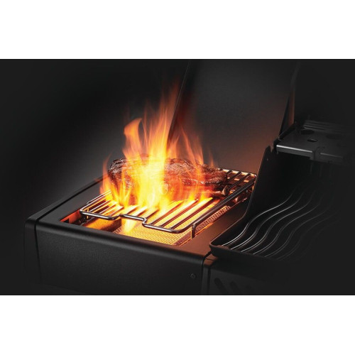 • Infračervená SIZZLE ZONE™: Boční hořák, který během vteřin vyvine teplotu až 800 °C. Ideální pro dokonalý "sear" efekt, který uzavře šťávu uvnitř masa.