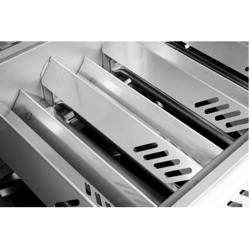 Všechny grilovací rošty jsou vyrobeny z masivní nerezové oceli s typickým WAVE™ designem, který zajišťuje rovnoměrné propečení a nezaměnitelné grilovací mřížky. Stejná kvalita pokračuje i pod roštem- trubicové hořáky a dvouúrovňové tepelné přepážky (flavorizační lišty) garantují perfektní distribuci tepla a minimální vzplanutí tuku.
