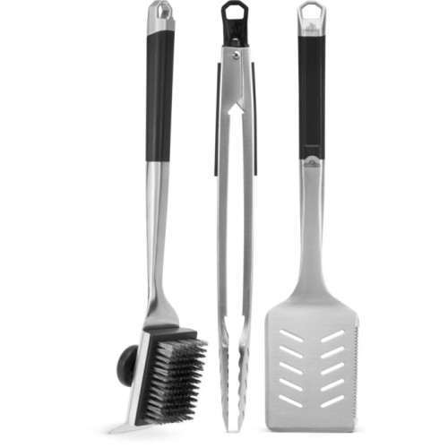 Posuňte své grilování na novou úroveň s prémiovou 3dílnou sadou nářadí, která je navržena pro profesionální pohodlí, kontrolu a odolnost. Tato sada obsahuje kleště Napoleon QuickClick™ pro snadnou manipulaci s potravinami na grilu jednou rukou, třístrannou špachtli se zkosenou hranou, která umožňuje otáčet a manipulovat s potravinami z jakéhokoli úhlu, a kartáč z nerezové oceli s odolnými štětinami pro náročné čištění, jako je odstraňování rzi, vodního kamene a připečených zbytků. Každý nástroj je vyroben z odolné nerezové oceli pro dlouhou životnost a má bezpečné, protiskluzové rukojeti, které poskytují bezpečnost a pohodlí při používání. Praktické otvory pro zavěšení ze slitiny hliníku, které slouží i jako otvíráky na lahve, udržují vaše nářadí po ruce. Kleště a špachtle lze snadno mýt v myčce nádobí. Pro prodloužení jejich životnosti se však doporučuje ruční mytí